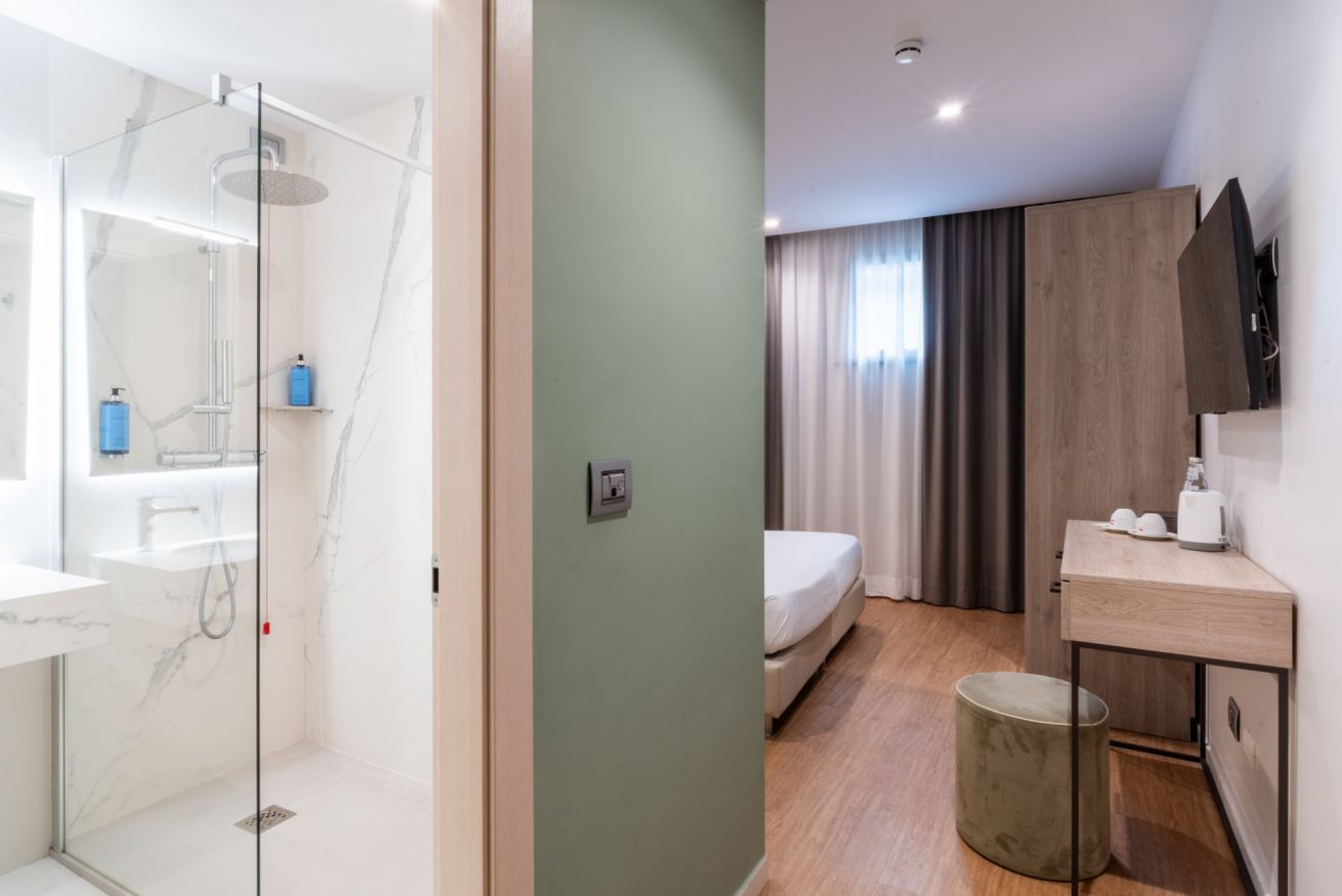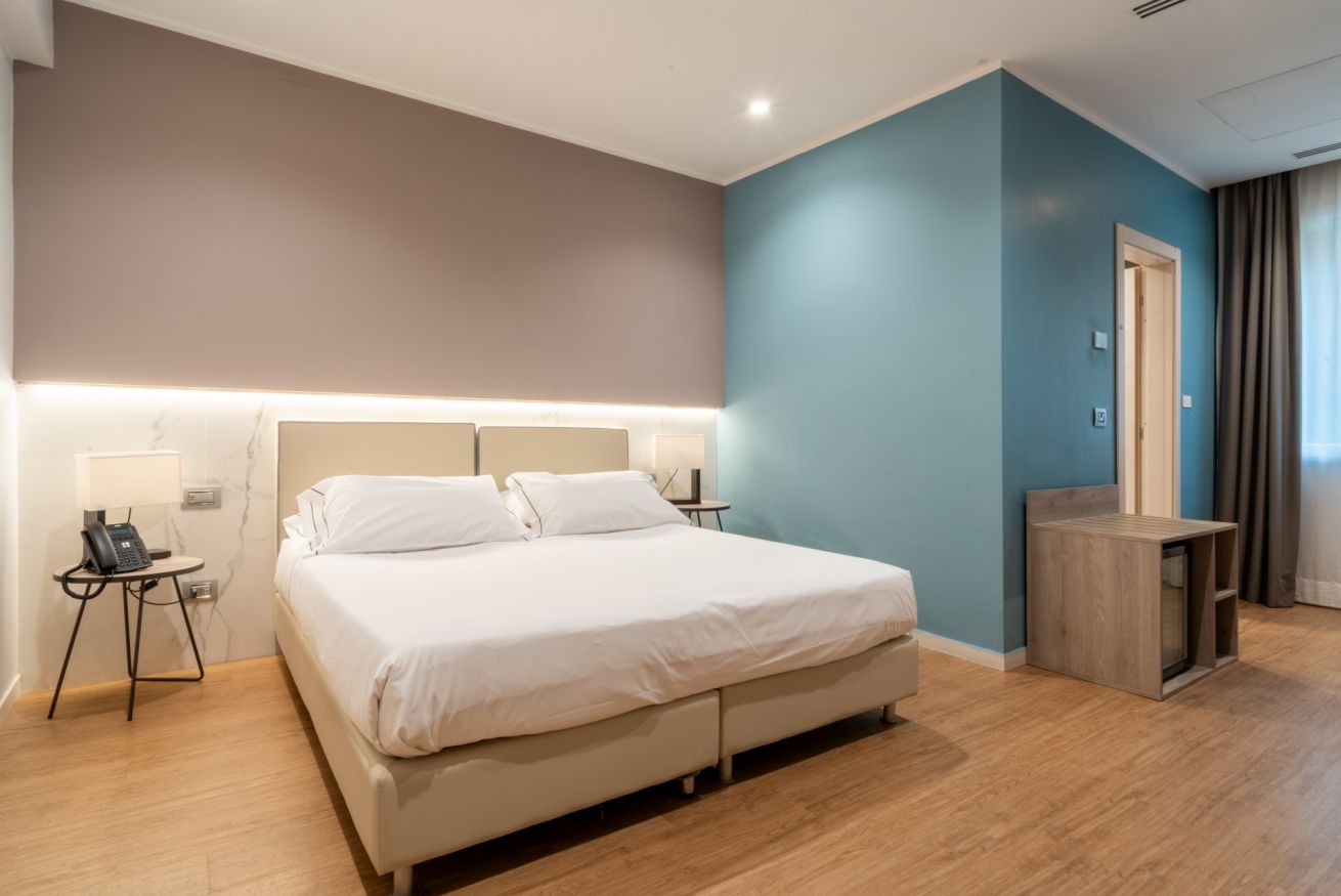 Camera Standard per due persone con minibar, linea di cortesia e bagno privato.